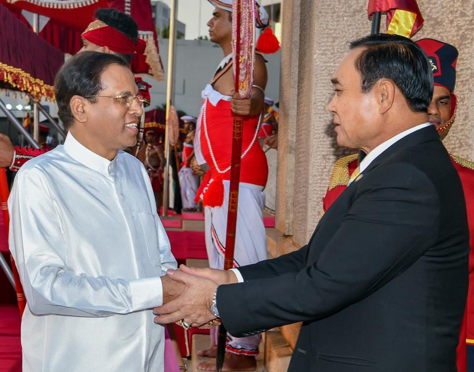 ஜனாதிபதி செயலகத்திற்கு வருகைத்தந்த தாய்லாந்து பிரதமரை ஜனாதிபதி கௌரவ மைத்ரிபால சிறிசேன அவர்கள் வரவேற்றதுடன், இராணுவ அணிவகுப்பு மரியாதையுடன் மரியாதை வேட்டுக்கள் முழங்க மகத்தான வரவேற்பும் அளிக்கப்பட்டது.