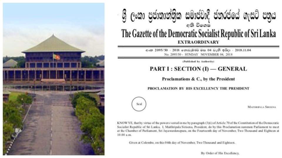 (நவம்பர் 14 ம் திகதி பாராளுமன்றம் கூடுகிறது ! வர்த்தமானி அறிவிப்பு வெளியானது ..)