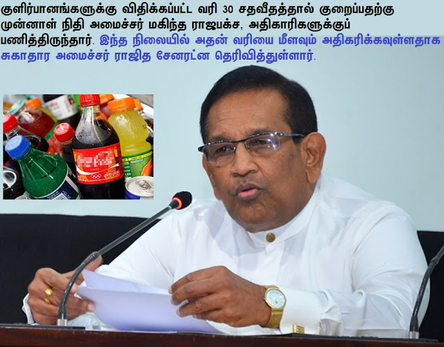சீனியின் அளவின் அடிப்படையில் சோடா உள்ளிட்ட குளிர்பானங்களுக்கு விதிக்கப்பட்ட வரி 30 சதவீதத்தால் குறைப்பதற்கு முன்னாள் நிதி அமைச்சர் மகிந்த ராஜபக்ச, அதிகாரிகளுக்குப் பணித்திருந்தார்.