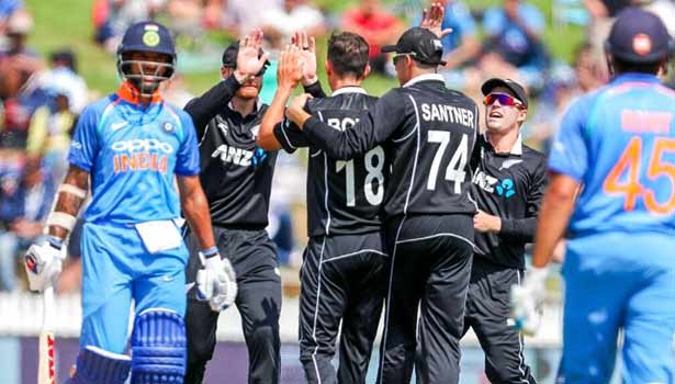 நியூசிலாந்தின் நேர்த்தியான பந்து வீச்சால், ஷிகர் தவான் (13 ரன்கள்), ரோகித் சர்மா (7 ரன்கள்), அம்பத்தி ராயுடு (0) , தினேஷ் கார்த்திக் (0), சுப்மான் கில் (9 ரன்கள்) என முன்னணி பேட்ஸ்மேன்கள் மின்னல் வேகத்தில் பெவிலியன் திரும்பினர். 30.5 ஓவர்கள் மட்டுமே தாக்குப்பிடித்த இந்திய அணி 92 ரன்களுக்கு ஆல் அவுட் ஆனது. இந்திய அணியில் ஒரு பேட்ஸ்மேன் கூட 30 ரன்களை எட்டவில்லை. இந்திய அணியில் அதிகபட்சமாக சஹால் 18 ரன்கள் எடுத்தார். நியூசிலாந்து அணியில் அதிகபட்சமாக பவுல்ட் 21 ரன்கள் விட்டுக்கொடுத்து 5 விக்கெட்டுகளை அள்ளினார்.