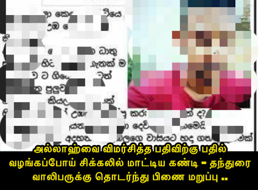 அல்லாஹ்வை அவமதிக்கும் வகையில் இடப்பட்ட பதிவு ஒன்றுக்கு ஒரு பெரும்பான்மை நபருடன் வாக்கு வாதத்தில் ஈடுபட்டு,புத்த பெருமானை அவமதிக்கும் விதத்தில் சில வசனங்களை பதிவேற்றிய காரணத்தினால் கைது செய்யப்பட்ட கண்டி தந்துறை பிரதேசத்தை சேர்ந்த முஸ்லிம் இளைஞனுக்கு பிணை வழங்கப்படாமல் ஒரு மாதத்துக்கும் அதிகமாக விளக்கமறியலில் இருப்பதாக அந்த வாலிபரின் பெற்றோர் மிகுந்த வருத்தம் வெளியிட்டுள்ளனர்.