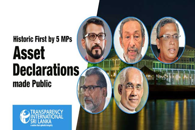 பல்வேறு கட்சிகளைச் சேர்ந்த 5 பாராளுமன்ற உறுப்பினர்கள் தமது சொத்துக்கள் மற்றும் பொறுப்புக்கள் பற்றிய விபரங்களை பொது வெளியில் வெளிப்படுத்துவதற்கு தன்னிச்சையாக முன்வந்துள்ளனர்.