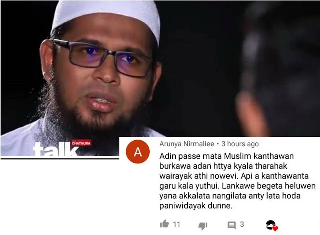 2. Arunya Nirmaliee: இன்றிலிருந்து எனக்கு முஸ்லிம் பெண்மணிகள் புர்கா அணித்திருக்கின்றனர் என்பதால் கோபமோ வெறுப்போ ஏற்படாது. நாம் அவர்களை மதிக்க வேண்டும். இலங்கையில் அரைகுறை ஆடையணிந்து திரிகின்ற சகோதரிகளுக்கு சிறந்ததொரு செய்தி வழங்கப்பட்டுள்ளது.