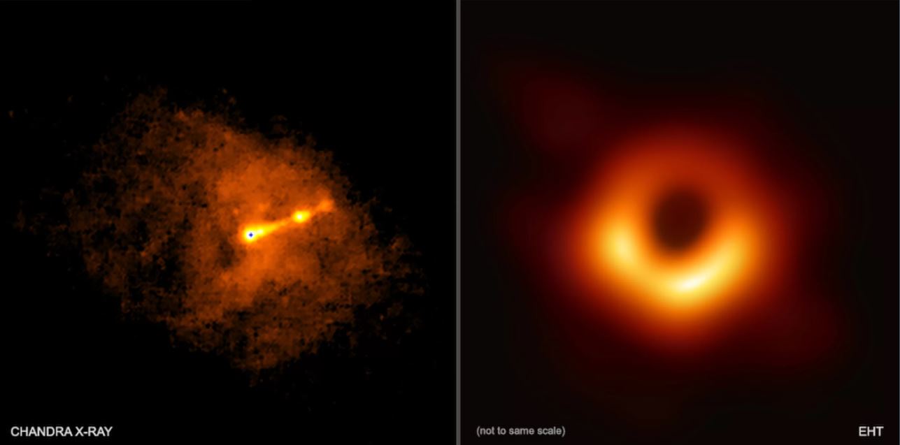 இக் கருந்துளை பூமியைப் விட மூன்று மில்லியன் மடங்கு பெரிதானதும் 400 பில்லியன் கிலோ மீட்டர் விட்டத்தையும் கொண்டது. மேலும் இது 500 மில்லியன் திரில்லியன் கிலோ மீட்டர் தொலைவில் உள்ளது.அதே நேரம் இது எமது முழு சூரிய குடும்பத்தின் அளவைக் காட்டிலும் பெரியது.சூரியனை விட 6.5 பில்லியன் மடங்கு திணிவுடையது. இந்தப் படம் உலகின் பல திசைகளில் இருக்கும் எட்டு தொலைநோக்கிகளின் வலைப்பின்னல் அமைப்பு மூலம் எடுக்கப்பட்டுள்ளது.