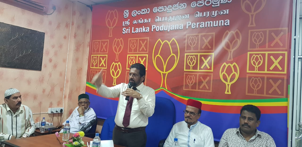 கொழும்பு மருதானையிலுள்ள ஸ்ரீல.பொ.பெ. கட்சிக் காரியாலயத்தில் முஸ்லிம் புத்திஜீவிகளைச் சந்தித்து கருத்துரை வழங்கும்போதே உவைஸ் ஹாஜி மேற்கண்டவாறு குறிப்பிட்டார்.