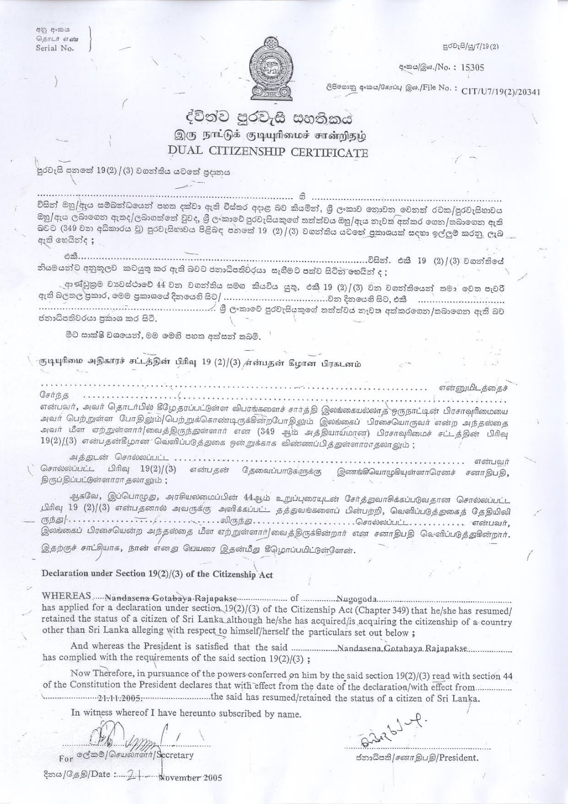 (கோட்டாபயவின்அமெரிக்க குடியுரிமை இரத்து; ஆவணங்கள் வெளியிடப் பட்டன.)