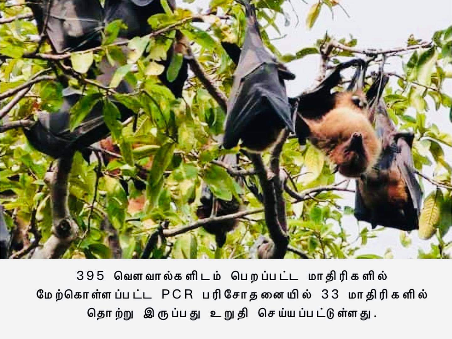 இலங்கையில் வௌவால்களுக்கும் கொரொனா தொற்று உறுதி செய்யப்பட்டுள்ளது. கொழும்பு பல்கலைகழகம் மற்றும் ஜெர்மன் ரொபர்ட்கோ பரிசோதனை நிறுவனம் இணைந்து நடத்திய பரிசோதனைகளில் இந்த விடயம் உறுதிசெய்யப்பட்டுள்ளது. 395 வௌவால்களிடம் பெறப்பட்ட மாதிரிகளில் மேற்கொள்ளப்பட்ட பி சி ஆர் பரிசோதனையில் 33 மாதிரிகளில் இந்த தொற்று இருப்பது உறுதி செய்யப்பட்டுள்ளது. இவை தற்போது பரவும் சார்ஸ் 2 வைரஸ் வகையை சேர்ந்த அல்பா மற்றும் பீட்டா திரிபுகள் அல்ல என கூறப்பட்டுள்ளது.