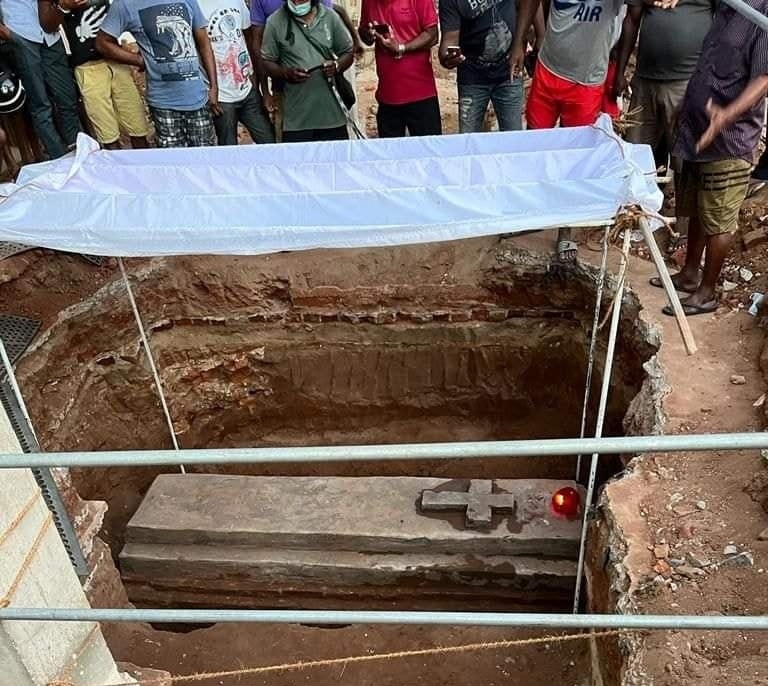 நிலத்திலிருந்து 3 அடி ஆழத்தில், கொன்கிறீட்டுகளால் தயாரிக்கப்பட்ட யாரோ ஒருவருடைய புதைகுழியொன்று கண்டுபிடிக்கப்பட்டு, இது தொடர்பில் தேவாலயத்தின் பங்கு தந்தைக்கு அறிவிக்கப்பட்டுள்ளது.