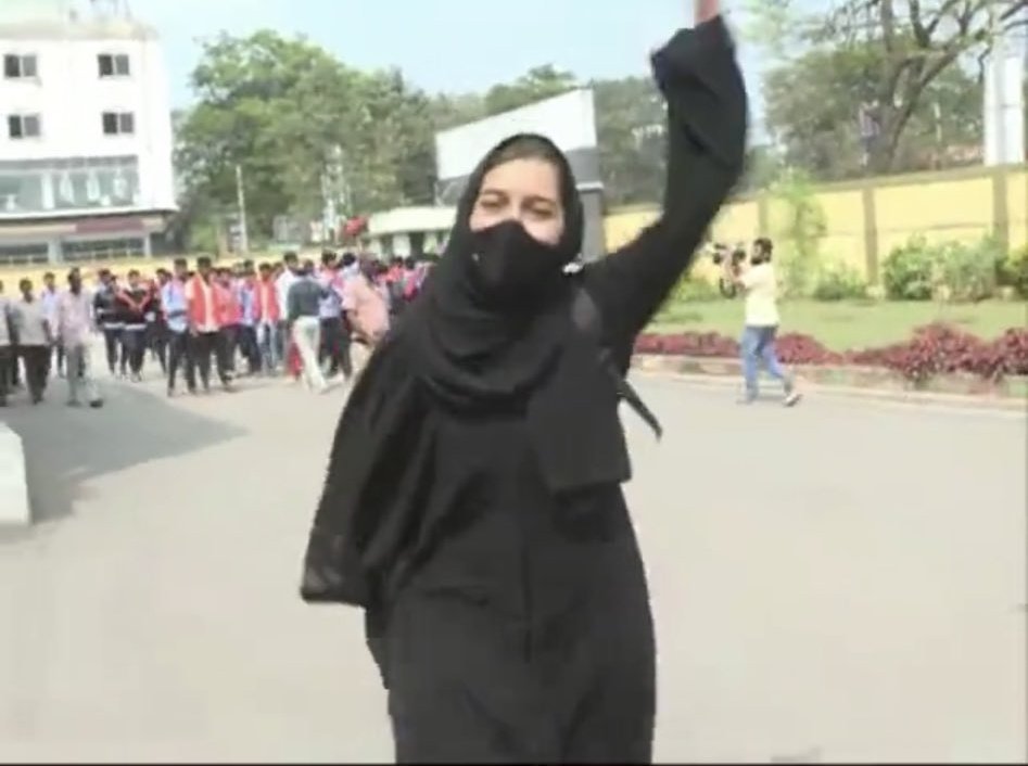 கர்நாடகாவில் ஹிஜாப் அணிந்து கொண்டு கல்லூரிக்குள் வந்த ஒரு மாணவியை இந்துத்துவா மாணவர்கள் கழுத்தில் காவி துண்டு அணிந்து கொண்டு ஜெய் ஸ்ரீராம் என கோஷமிட்டனர். ஆனாலும் அந்த மாணவி அவர்களை எல்லாம் ஒற்றை ஆளாக சமாளித்து உள்ளே சென்றார்.