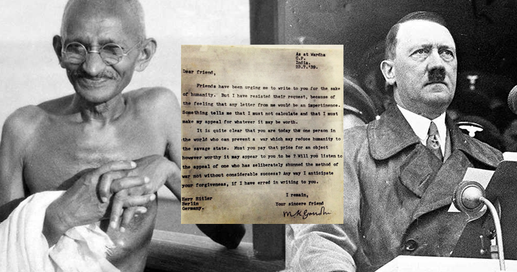 அதே காலக்கட்டத்தில் பிரிட்டிஷ் அரசிடம் இருந்து சுதந்திரம் கோரி அகிம்சை வழியில் போராடி வந்த இந்தியாவின் தேசதந்தை மகாத்மா காந்தி, ஜெர்மனியில் யூதர்கள் ரத்தம் சிந்துவதை நிறுத்த வலியுறுத்தி 1939-ம் ஆண்டு ஹிட்லருக்கு கடிதம் ஒன்றை எழுதினார்.