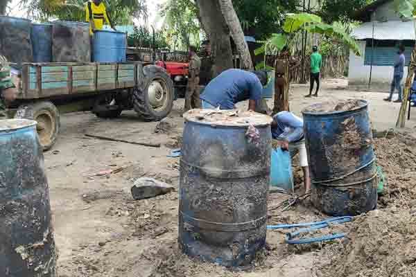 இதன்போது நிலத்தில புதைக்கப்பட்ட 7 பெரல்கள் மீட்கப்பட்டுள்ளன அதில் எரிபொருட்கள் இருப்பது இனம்காணப்பட்டுள்ள நிலையில் அவை மண்ணெண்ணெய் என அடையாளம் காணப்பட்டுள்ளது. இவ்வாறு 7 பெரல்களில் இருந்தும் 715 லீற்றர் மண்ணெண்ணெய் மீட்கப்பட்டுள்ளது.