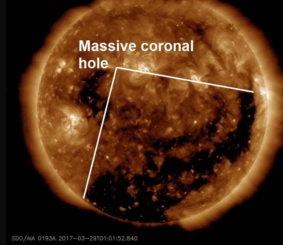 இந்த சூரிய பகுதியில் இருந்து கடுமையான கதிர்வீச்சின் காரணமாக காந்த ஆற்றல் வெளிப்படுகிறது.