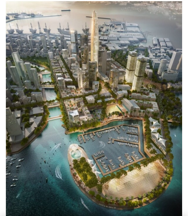 இதில், ஸ்கிட்மோர், ஓவிங்ஸ் அன் மெரில் நிறுவனமே, துறைமுக நகரத்தை வடிவமைப்பதற்கான கட்டளையைப் பெற்றிருக்கிறது.
