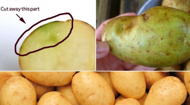 உருளைக்கிழங்கின் கெட்டு போன வகைகளில் நச்சு இருக்கும். இதன் தோலிலோ அல்லது உள்பக்கத்திலோ பச்சை நிறத்தில் இருந்தால் அதை சாப்பிடக்கூடாது.
