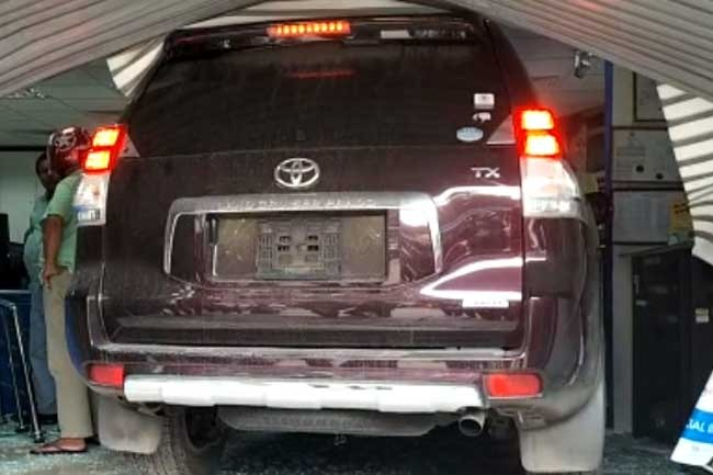 வங்கிக்கு அருகில் நிறுத்தி வைக்கப்பட்டிருந்த கார் சாரதியின் கட்டுப்பாட்டை இழந்து வங்கியின் படிக்கட்டுக்கள் ஊடாக முன்னோக்கி சென்று வங்கியினுள் புகுந்துள்ளது.