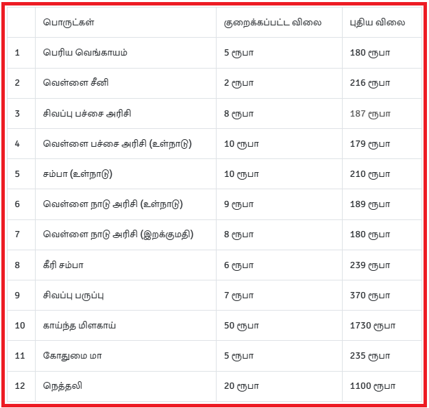 12 அத்தியாவசிய பொருட்களுக்கான விலைகள் குறைக்கப்படுவதாக அறிவிக்கப்பட்டுள்ளது.