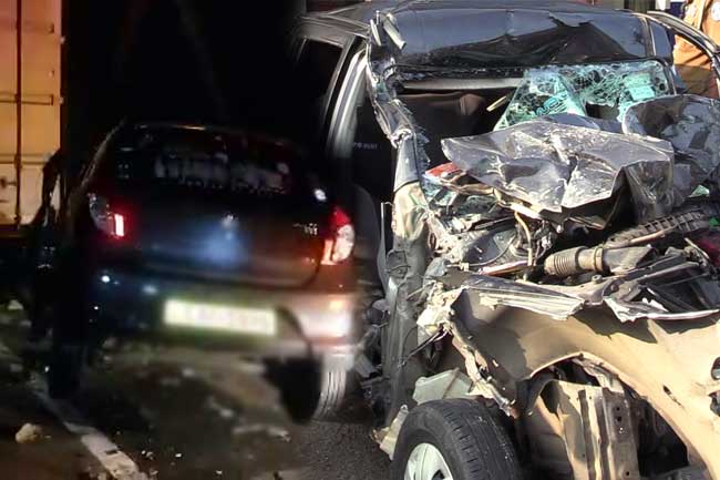 தொழில்நுட்பக் கோளாறு காரணமாக நெடுஞ்சாலையில் நிறுத்தி வைக்கப்பட்டிருந்த லொறியின் பின்புறம் இந்த கார் மோதியதில் இந்த விபத்து நேர்ந்துள்ளதாக பொலிஸார் தெரிவிக்கின்றனர்.