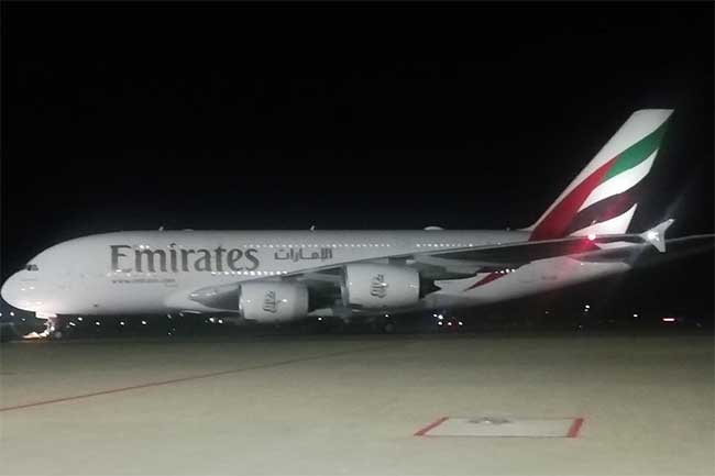 எமிரேட்ஸ் விமான சேவைக்கு சொந்தமான இந்த EK 449 என்ற விமானம் இன்று அதிகாலை 3.10 மணியளவில் நியூசிலாந்தின் ஒக்லாந்தில் இருந்து டுபாய் நோக்கி பயணித்த போது எரிபொருளை பெறுவதற்காக கட்டுநாயக்க விமான நிலையத்தில் தரையிறங்கியதாக தெரிவிக்கப்படுகின்ற
