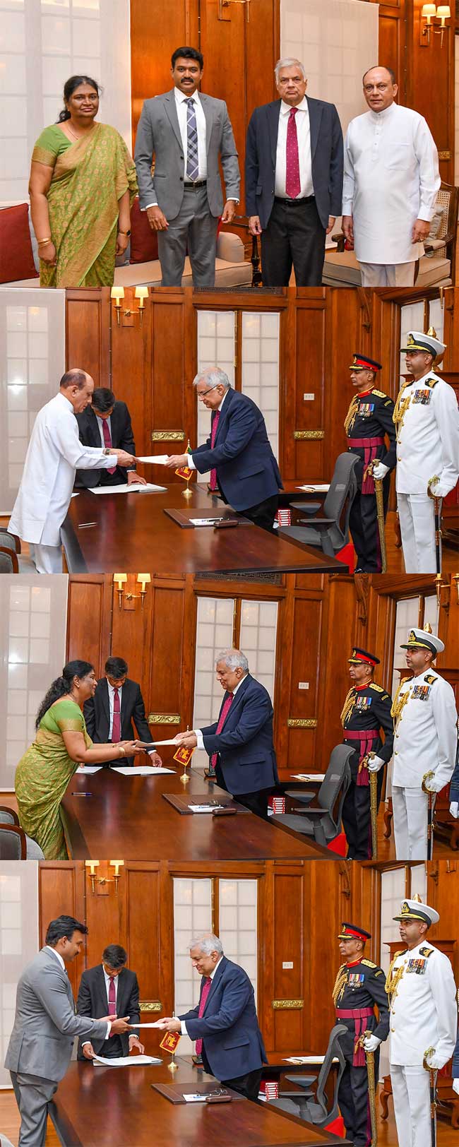 இதன்படி, வடக்கு மாகாண ஆளுநராக திருமதி பி.எஸ்.எம். சார்ள்ஸ், கிழக்கு மாகாண ஆளுநராக செந்தில் தொண்டமான், வடமேல் மாகாண ஆளுநராக லக்ஷ்மன் யாப்பா அபேவர்தன ஆகியோர் ஜனாதிபதி முன்னிலையில் சத்தியப்பிரமாணம் செய்துகொண்டனர்.