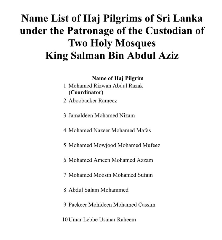இலங்கையின் ஹஜ் யாத்ரீகர்களின், பெயர் பட்டியல் கீழ்வருமாறு,