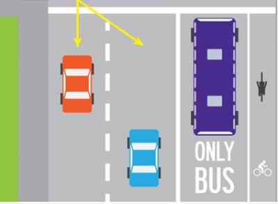 பஸ் தரிப்பிடம் ஒன்றில் பஸ் வண்டி ஒன்று நிறுத்தப்படும் போது பின்னால் வருகை தரும் பஸ் வண்டி முன்னாலிருக்கும் பஸ் பயணத்தை ஆரம்பிக்கும் வரை காத்திருக்க வேண்டும்.