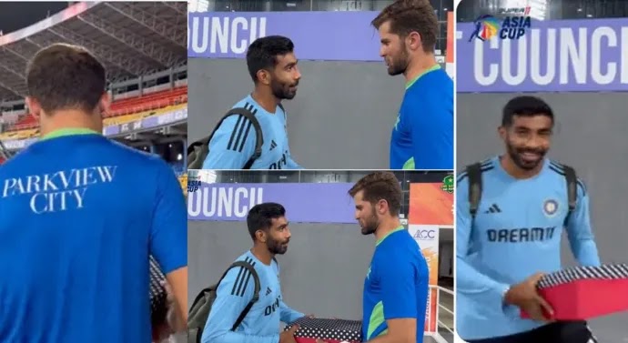 பாகிஸ்தான் பந்துவீச்சாளரான ஷாஹீன் அஃப்ரிடி இந்திய பந்து வீச்சாளரான ஜஸ்ப்ரிட் பும்ராவிற்கு பரிசு ஒன்றை வழங்கிய நெகிழ்ச்சி சம்பவம் பதிவாகியுள்ளது.