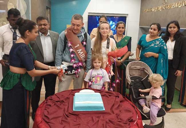 இன்று (26) இலங்கை வந்த ரஷ்ய தம்பதியுடன், 2023ஆம் ஆண்டு இலங்கைக்கு வந்துள்ள சுற்றுலாப் பயணிகளின் எண்ணிக்கை ஒரு மில்லியனை எட்டியுள்ளது.