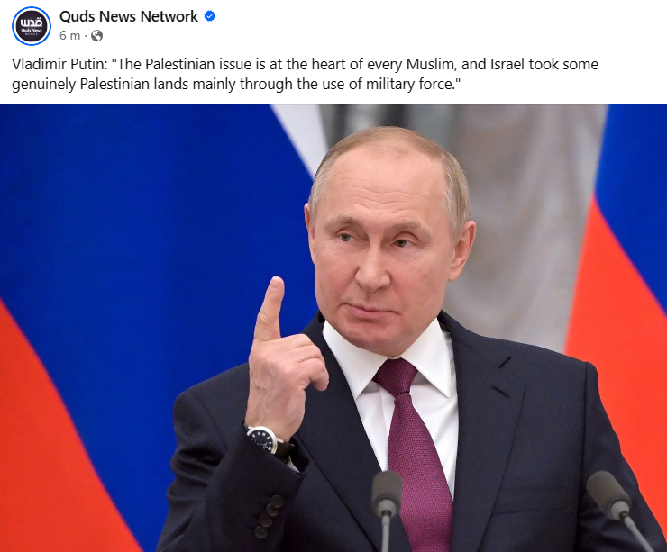 இவ்வாறு தெரிவித்துள்ளார் ரஸ்ய அதிபர் விளாமிடீர் புட்டின். இந்தத் தகவலை பலஸ்தீன ஆதரவு ஊடகம் வெளியிட்டுள்ளது.