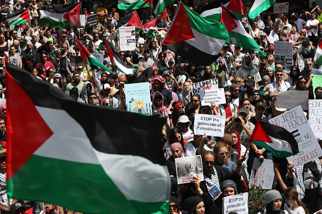 காசாவில் இஸ்ரேல் நிகழ்த்தி வரும் இனப்படுகொலைக்கு எதிர்ப்பு தெரிவித்து ஆஸ்திரேலியாவின் சிட்னியில் ஆயிரக்கணக்கானோர் தற்போது பேரணி நடத்துகின்றனர்.