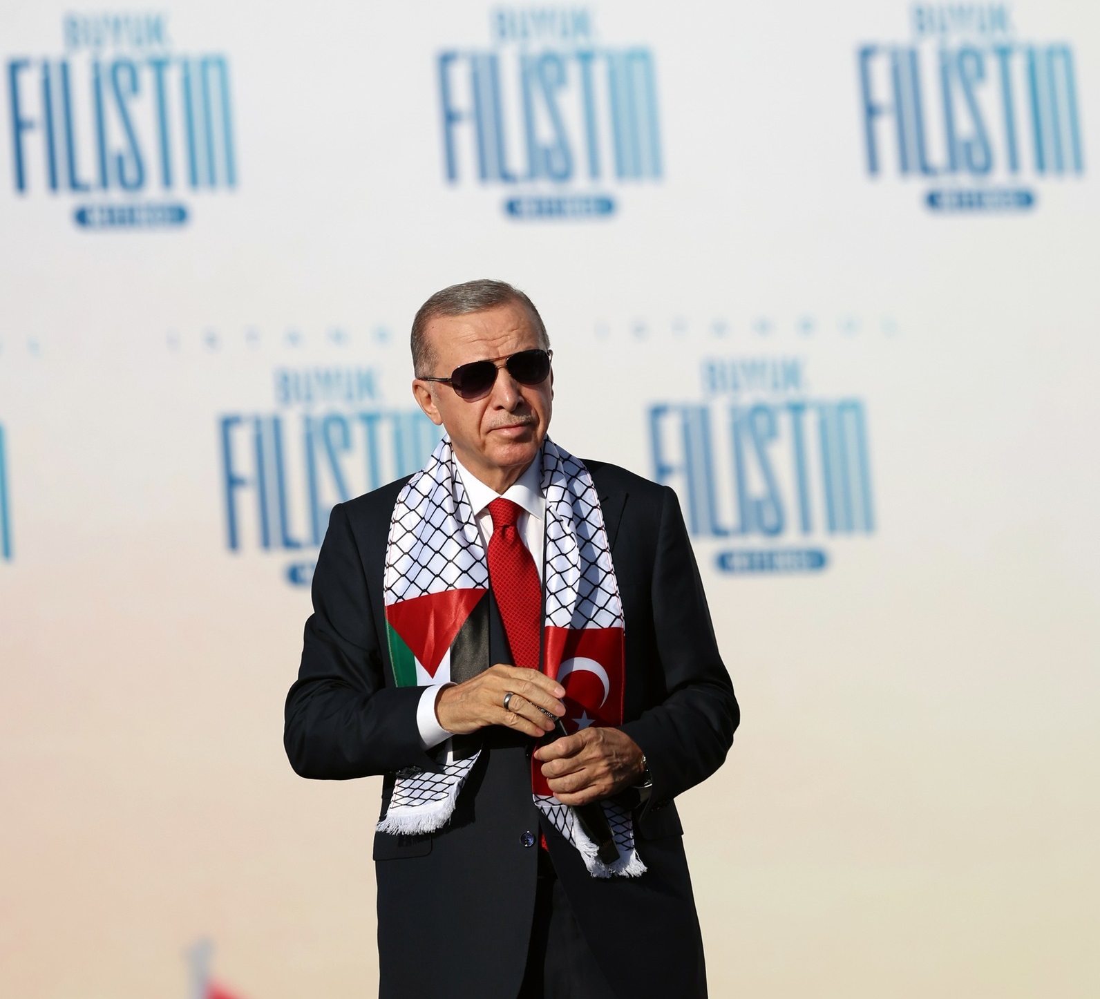 சனிக்கிழமையன்று, இஸ்தான்புல்லில் பாலஸ்தீன ஆதரவு பேரணியில் நூறாயிரக்கணக்கான மக்களிடம் எர்டோகன் உரையாற்றினார்