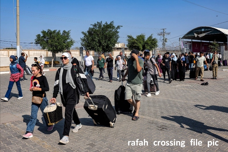 பாலஸ்தீனத்திற்கும் எகிப்துக்கும் இடையிலான ரஃபா எல்லை வழியாக காசாவை விட்டு வெளியேற அனுமதிக்கப்பட்ட 596 வெளிநாட்டு மற்றும் இரட்டை பிரஜைகளில் பதினேழு (17) இலங்கையர்களும் உள்ளடங்குவதாக தெரிவிக்கப்பட்டுள்ளது.