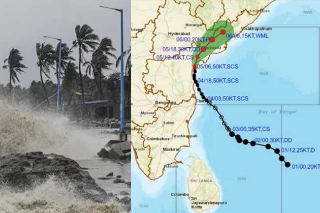 பாபட்லா- ஓங்கோல் இடையே 110 கிலோ மீட்டர் வேகத்தில் சூறாவளி கரையை கடந்த நிலையில் ஆந்திராவில் பலத்த மழை பெய்து வருகிறது.