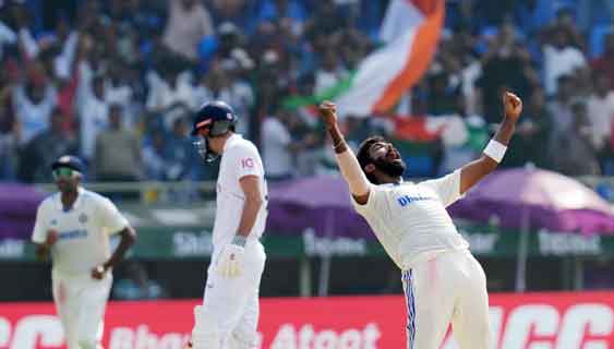 விசாகப்பட்டினத்தில் நடந்து முடிந்த இங்கிலாந்துக்கு எதிரான இரண்டாவது டெஸ்ட் கிரிக்கெட் போட்டியில் இரண்டு இன்னிங்ஸ்களிலும் சேர்த்து 9 விக்கெட் கைப்பற்றியதை அடுத்து பும்ரா இந்த பெருமையை பெற்றுள்ளார்.