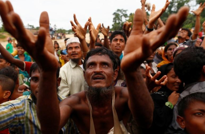 ரோஹிங்யா முஸ்லிம் மக்களின் கிராமங்களுக்கு தீவைக்கப்பட்டது. நூற்றுக்கணக்கானோர் உயிரிழந்தனர். 4லட்சத்துக்கும்