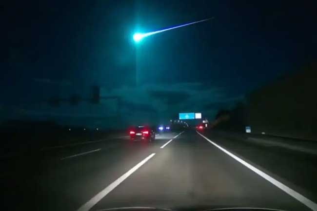 ஸ்பெயின் மற்றும் போர்த்துக்கல் நாடுகளுக்கு இடையேயான வானத்தை ஒரு மாபெரும் விண்கல் கடக்கும் வீடியோ வெளியாகியுள்ளது.