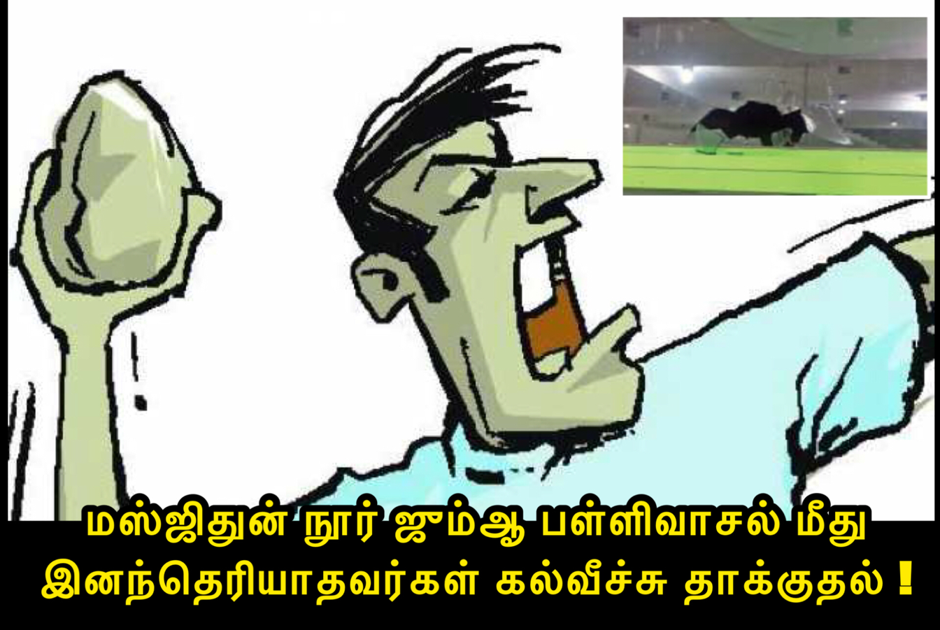 வழமை போன்று நேற்று 10 மணியளவில் பள்ளிவாசலின் கதவுகளை மூடிவிட்டு நித்திரைக்கு சென்றோம். பள்ளிவாசல் உட்பகுதியில் இங்கு கடமையாற்றும் முஅத்தின் நித்திரை கொண்டிருந்தார் திடீரெ பெரும் சத்தம் ஒன்று கேட்டுள்ளது. கண்விழித்து பார்க்கையில் பள்ளிவாசலுக்குள் கல் ஒன்று இருந்துள்ளது.
