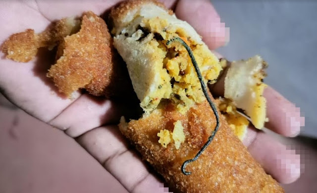 அங்கு றோல்ஸ்களை பரிமாறி சாப்பிட்ட வேளை. அதில் ஒன்றினுள் சுமார் 4 அங்குல அளவு நீளமுடைய கம்பித் துண்டு காணப்பட்டுள்ளது.