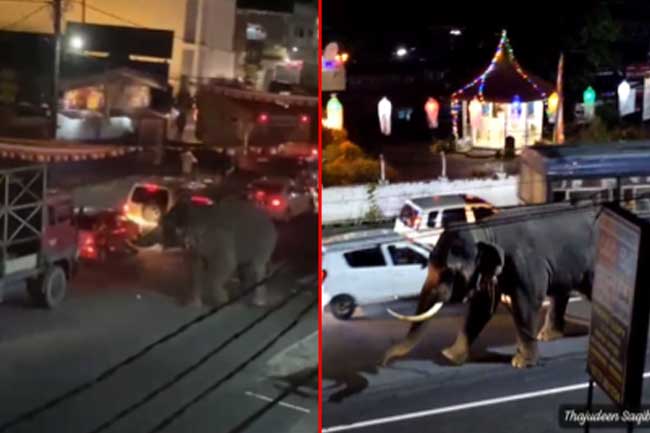 மாவனெல்லை நகரில் இடம்பெற்ற வெசாக் பெரஹராவின் இறுதியில் யானையொன்று குழம்பியுள்ளது.