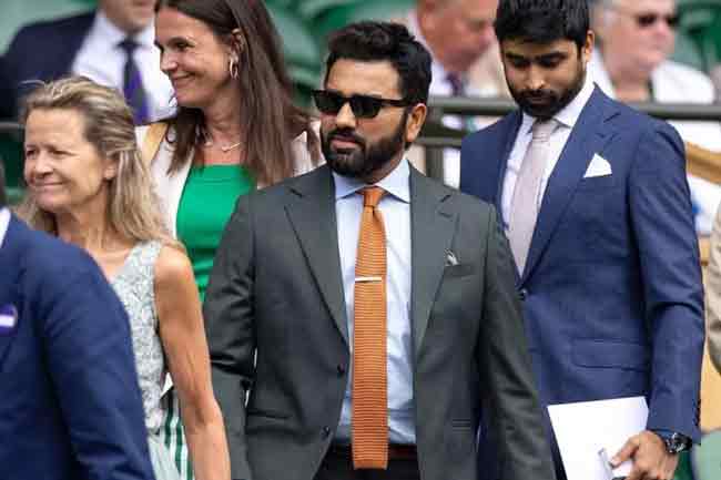 இந்நிலையில், விம்பிள்டன் டென்னிஸ் தொடரின் முதல் அரையிறுதி போட்டியை இந்திய கிரிக்கெட் அணியின் கேப்டன் ரோகித் சர்மா கண்டு ரசித்தார். இதுதொடர்பான புகைப்படம் இணைய தளத்தில் வைரலாகி வருகிறது.