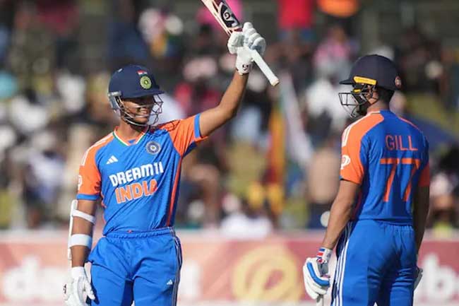 முதல் ஓவரை சிக்கந்தர் ராசா வீசிய வீசினார். டொஸ்ஸாக வந்த முதல் போலை ஜெய்ஷ்வால் சிக்ஸர் விளாசினார்.
