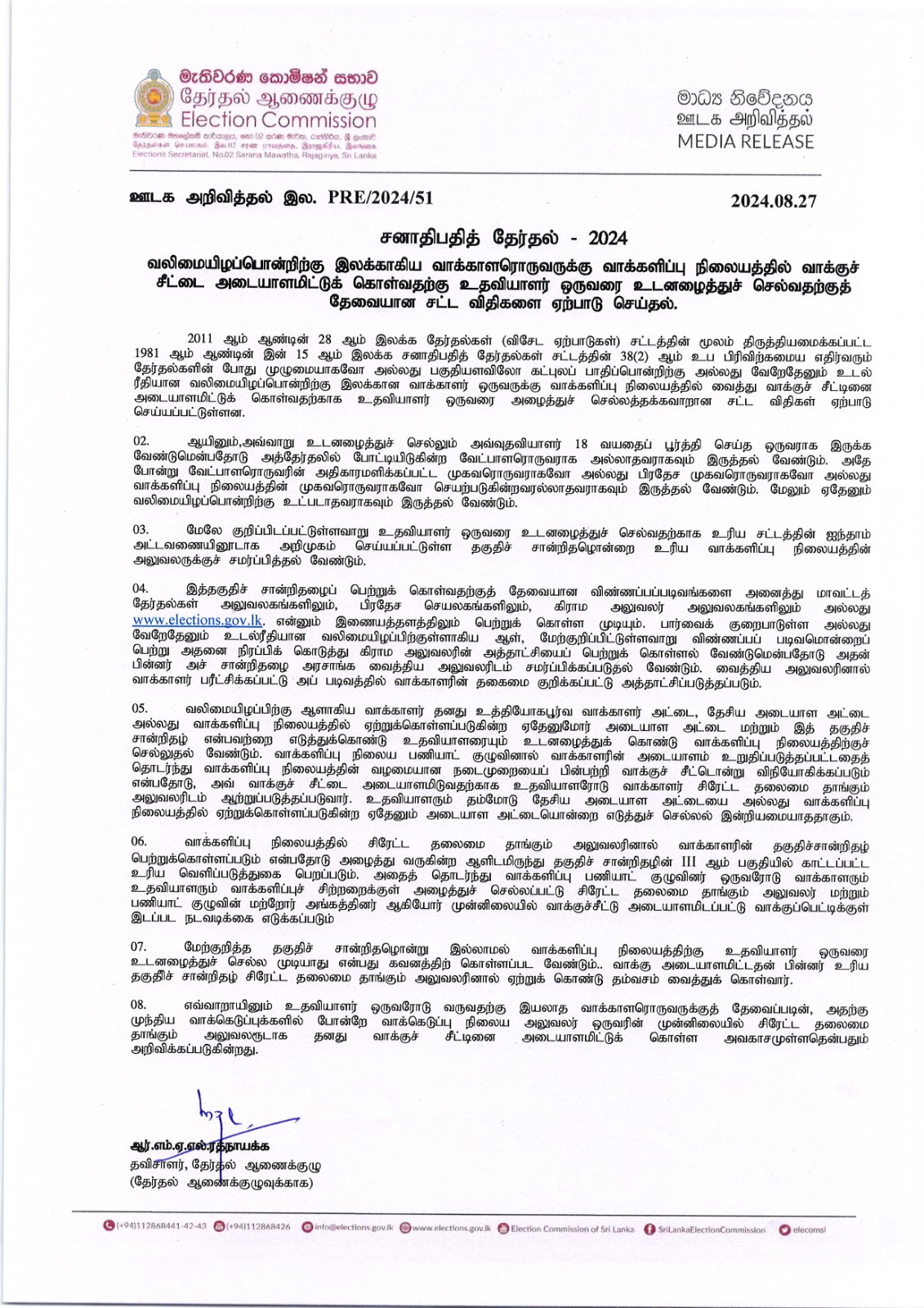 இது தொடர்பாக தேர்தல் ஆணைக்குழு வெளியிட்டுள்ள ஊடக அறிக்கை மேலே…