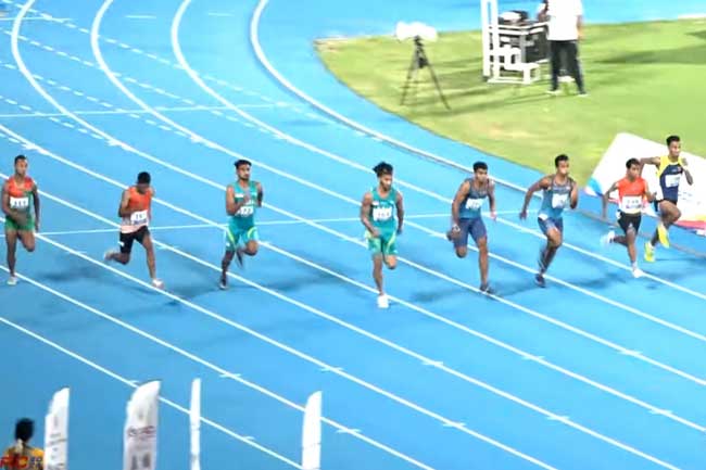 இதற்கிடையில், ஆடவருக்கான 100 மீற்றர் இறுதிப் போட்டியும் இடம்பெற்றது, அங்கு இலங்கையை பிரதிநிதித்துவப்படுத்தி மெரோன் விஜேசிங்க மற்றும் தினேத் இந்துவர ஆகியோர் களம் இறங்கினர்.