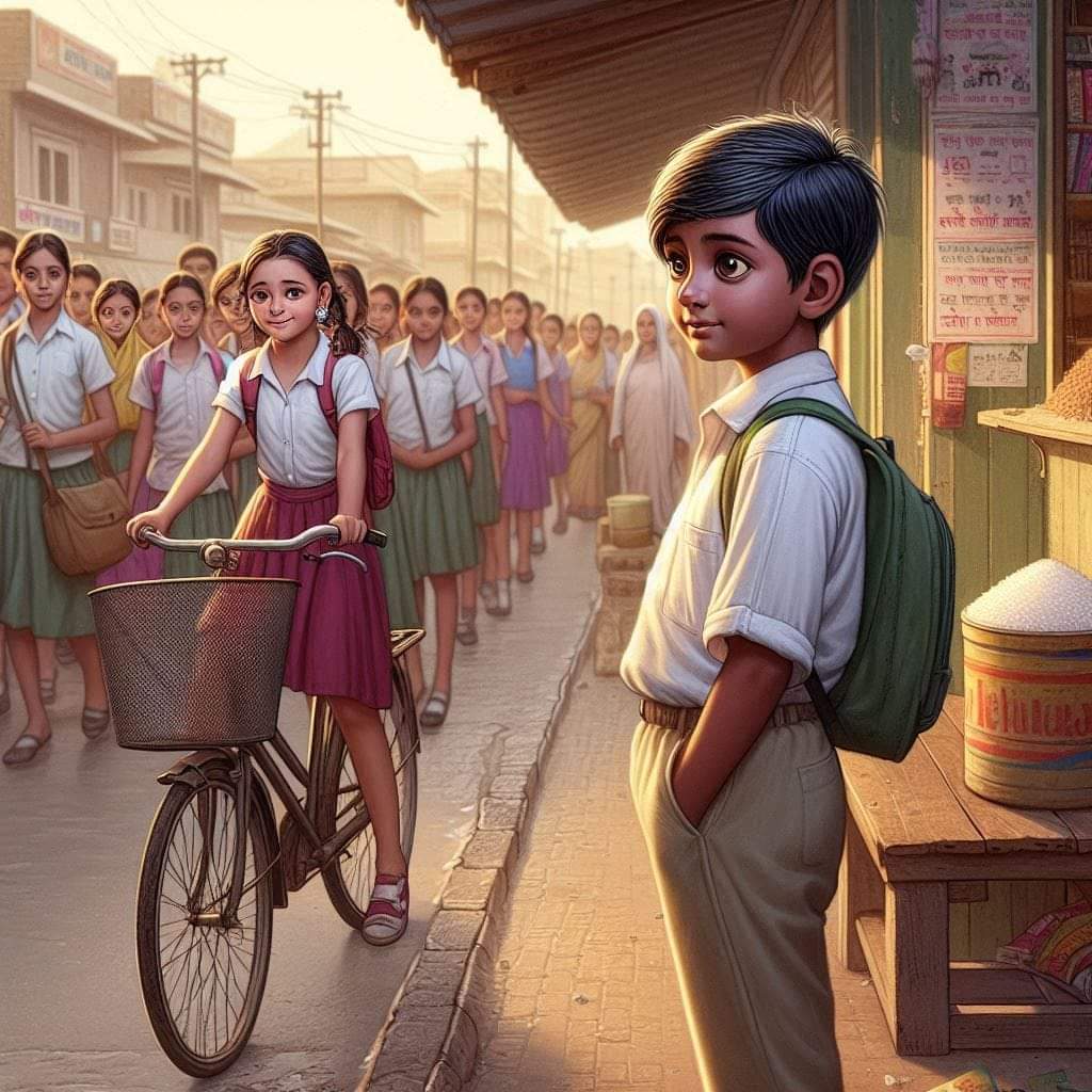 மறு நாள் பள்ளியில் அவளை பார்த்தேன். பல நாள் விருப்பம், இன்று பேசி விட்டேன்... நேற்று சைக்கிளில் நீ சென்ற போது என்னை பார்த்து உதிர்த்த புன்னகை நன்றாக இருந்தது என்றேன்... எப்போ? என்றாள்... அதான் ration கடை கிட்ட...