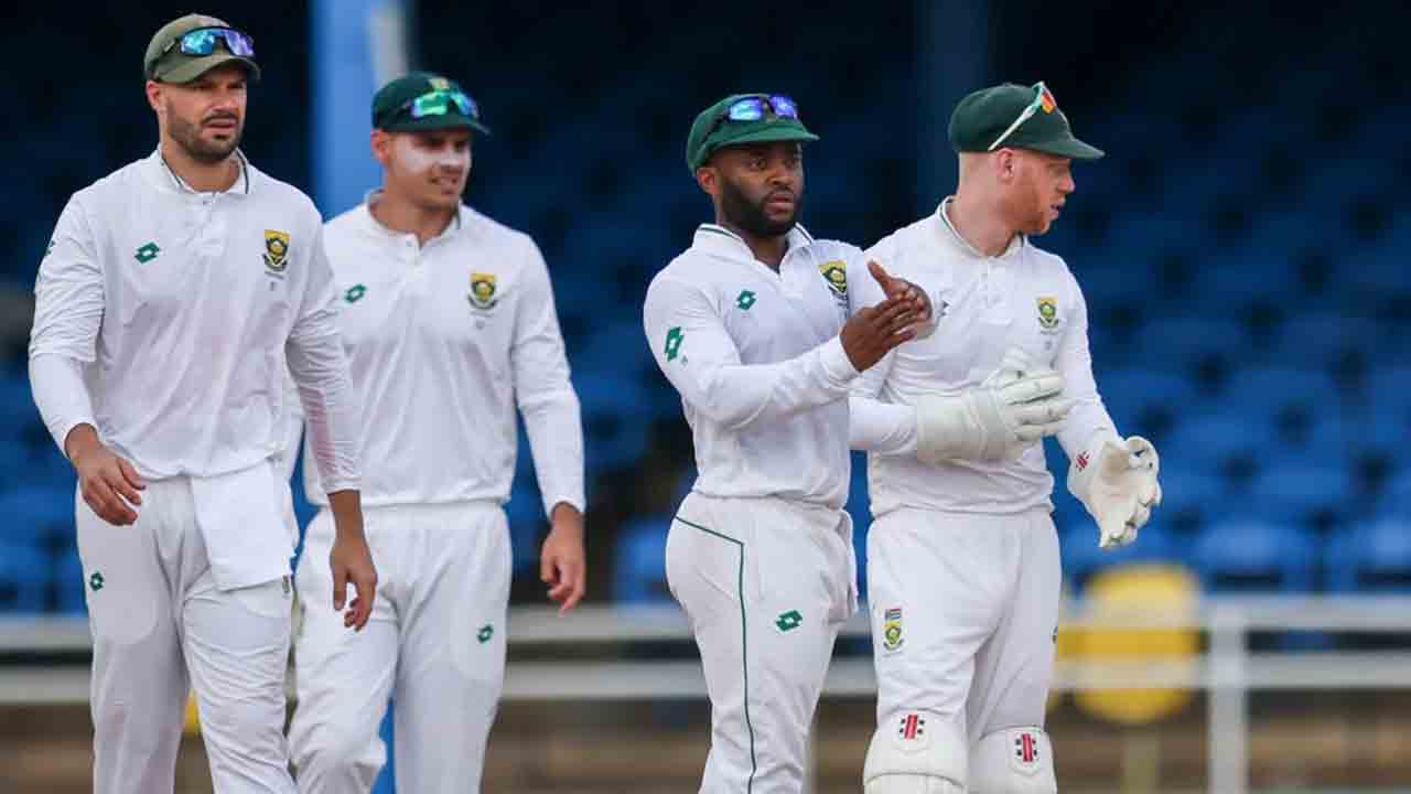 டெம்பா பவுமா (தலைவர்), டேவிட் பெடிங்ஹாம், ஜெரால்ட் கோட்ஸி, டோனி டி சோர்சி, மார்கோ ஜென்சன், கேசவ் மகராஜ், ஐடன் மார்க்ரம், வியான் முல்டர், செனுரன் முத்துசாமி, டேன் பேட்டர்சன், ககிசோ ரபாடா, டிரிஸ்டன் ஸ்டப்ஸ், ரியான் ரிக்கிள்டன், கைல் வெரீன்