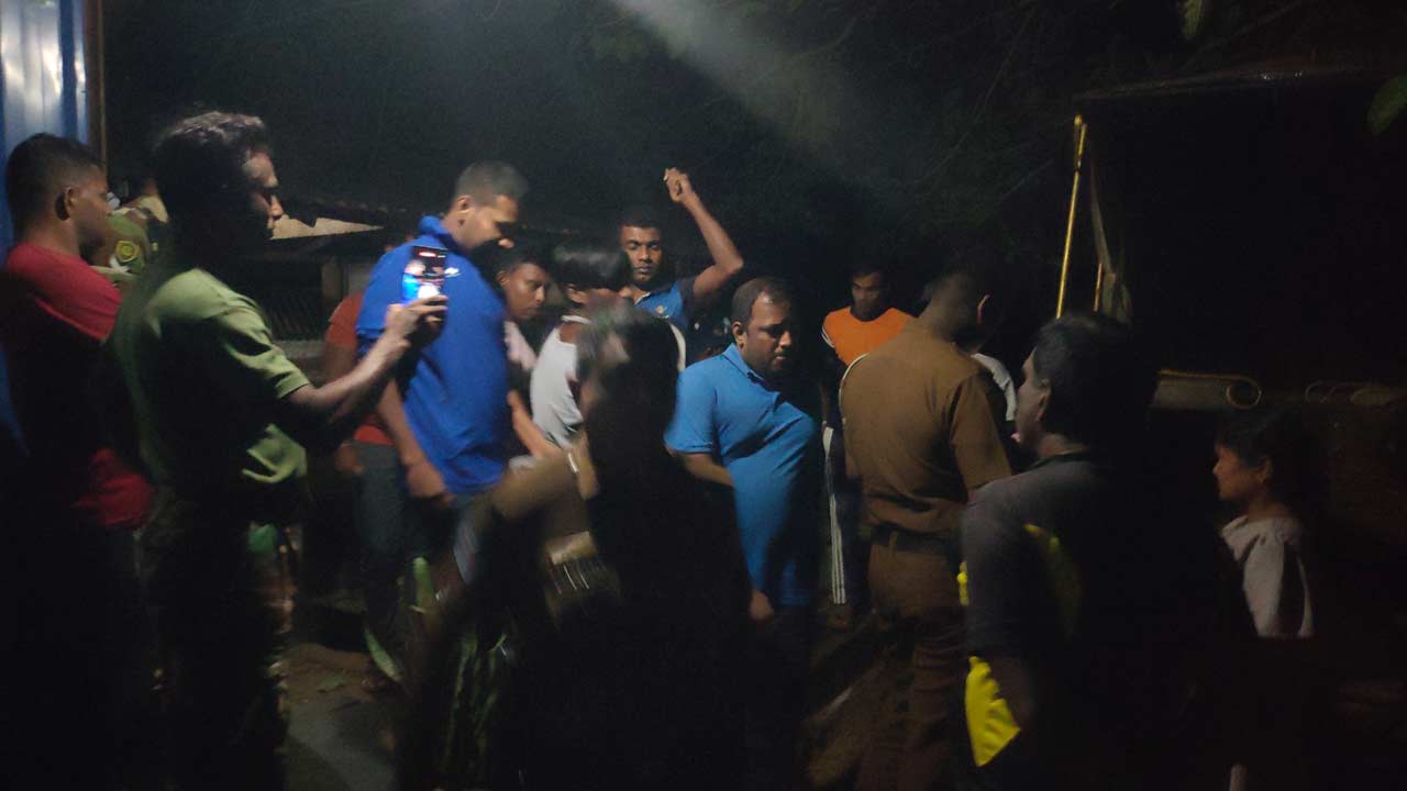 சம்பவ இடத்தில் பொதுமக்கள் பலரும் கூடியிருந்ததுடன், மற்றைய சந்தேக நபரை தேடி வருகின்றனர். பொலிசார் குறித்த சம்பவம் தொடர்பான விசாரணைகளை ஆரம்பித்துள்ளனர்.