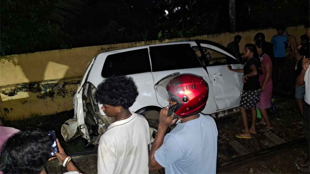 காலியில் இருந்து மாத்தறை நோக்கி பயணித்த ரயிலுடன் கார் மோதியுள்ளதாக தெரிவிக்கப்படுகிறது.
