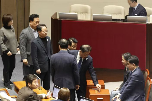 தென் கொரிய ஜனாதிபதி யூன் சுக் யோலை பதவி நீக்கம் செய்யும் பிரேரணை மீதான வாக்கெடுப்புக்கு முன்னதாக ஆளும் கட்சியைச் சேர்ந்த மூன்று பாராளுமன்ற உறுப்பினர்களைத் தவிர ஏனைய அனைவரும் வெளிநடப்பு செய்திருந்தனர்.
