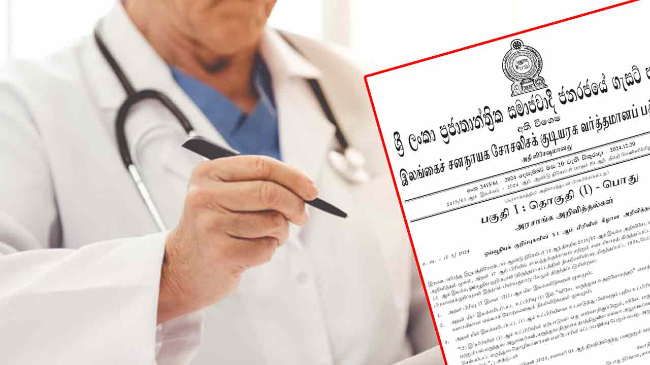 அனைத்து மருத்துவர்களின் கட்டாய ஓய்வு வயதெல்லை 63 ஆக நிர்ணயம் செய்து அதி விசேட வர்த்தமானி அறிவித்தல் வெளியிடப்பட்டுள்ளது.