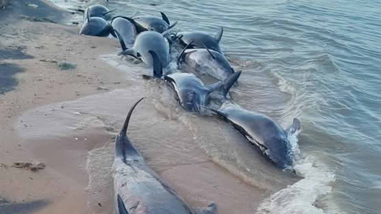 அங்கு 11 டொல்பின்கள் இறந்து கிடந்தன, மீன்களின் உடல்களை பரிசோதித்த மருத்துவர்கள், இந்த விலங்குகள் வலையில் சிக்கி, கடற்கரையில் வீசப்பட்டிருக்கலாம் என்று சந்தேகம் வௌியிட்டனர்.