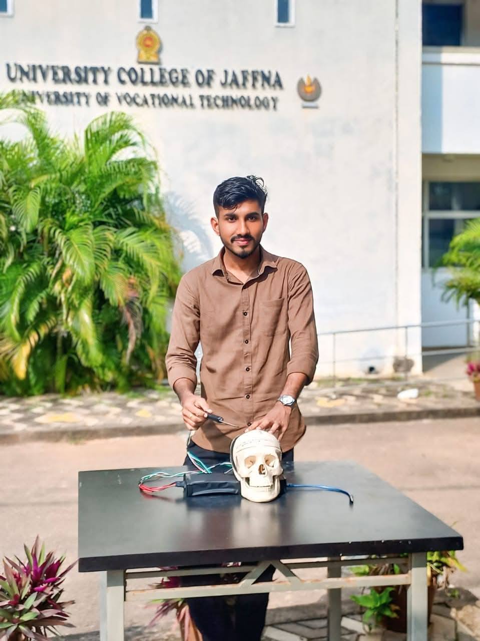 இவர் யாழ்ப்பாண பல்கலைக்கழக கல்லூரியின் (Mechatronic Engineering Technology) பிரிவின், இறுதி ஆண்டு மாணவராவார்.